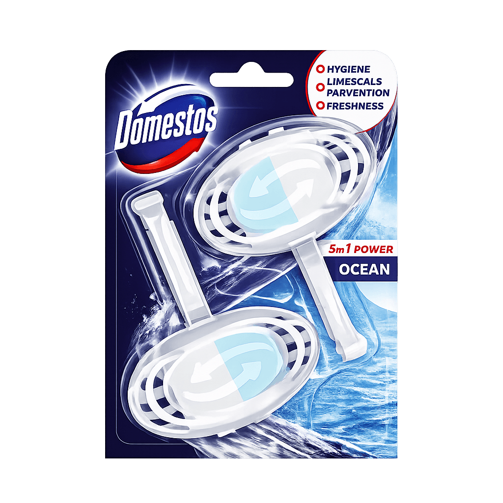 A Domestos WC illatosító rúd kosaras 3in1 Ocean ideális megoldás, ha szeretnéd WC-det folyamatosan tisztán, frissen és higiénikusan tartani. A praktikus kosaras kialakításnak köszönhetően könnyen felhelyezhető a WC peremére, és minden öblítéskor aktívan dolgozik a tisztaságért.