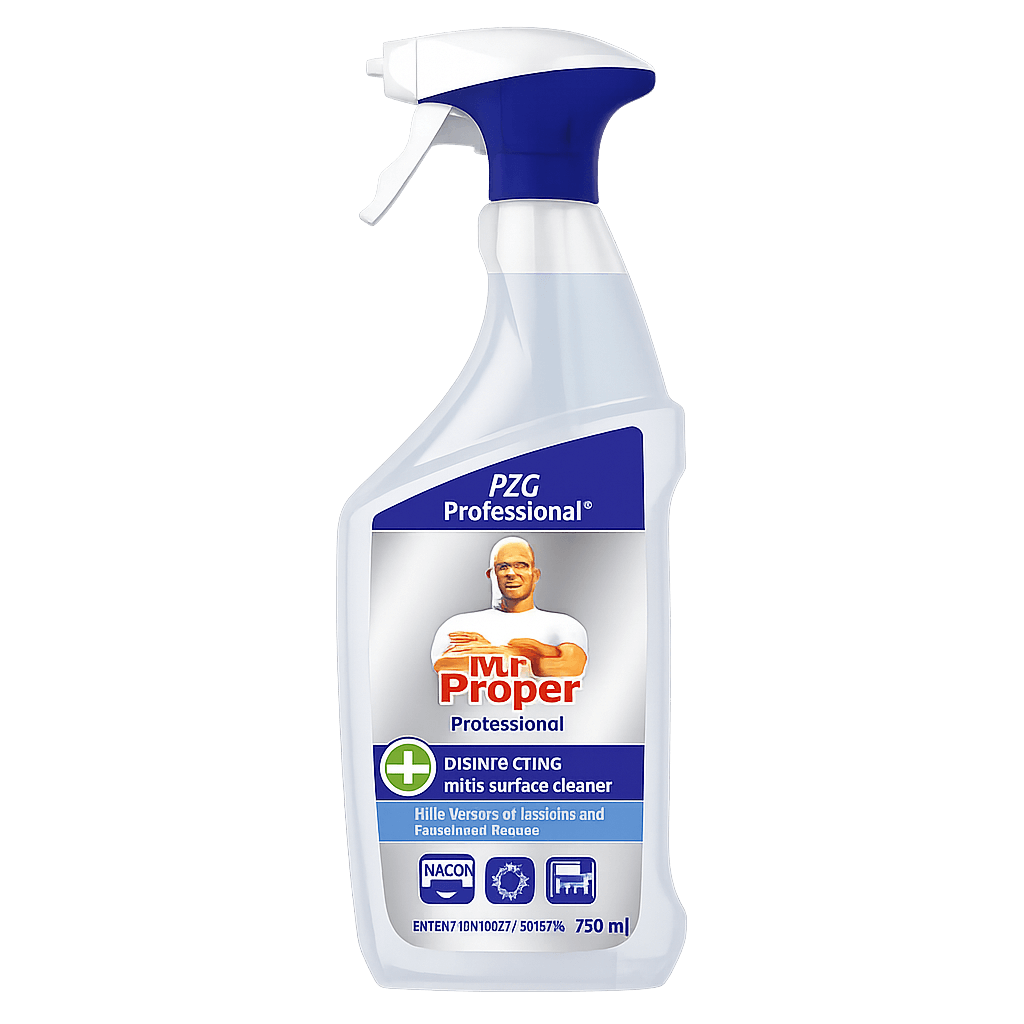 A Mr. Proper Professional 3in1 szórófejes fertőtlenítő tisztítószer – 750 ml professzionális formulával készült, amely egyszerre tisztít, fertőtlenít és friss tisztaságérzetet biztosít.