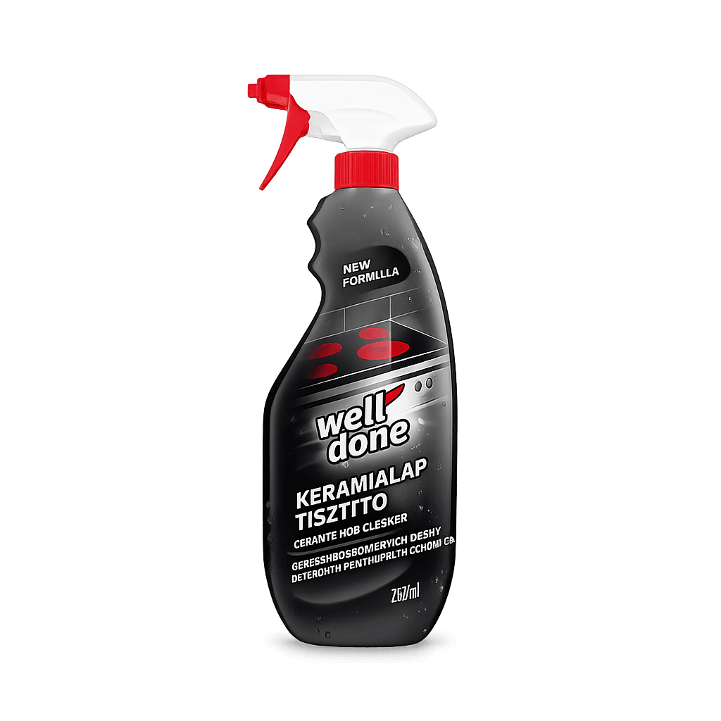 A Well Done kerámialap tisztító spray kifejezetten kerámia főzőlapok tisztítására lett kifejlesztve, ahol a ráégett zsíros szennyeződések és makacs foltok gyakran problémát jelentenek.